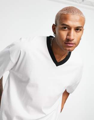 T shirt with contrast collar Clearance, Topman extreme oversized vee neck t Clearance