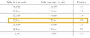 - Taille chausson robeez
