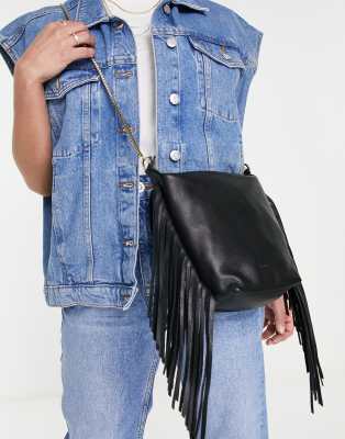 - Black leather fringe crossbody bag shop