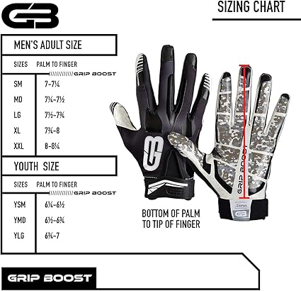 - Grip boost football gloves size chart sold