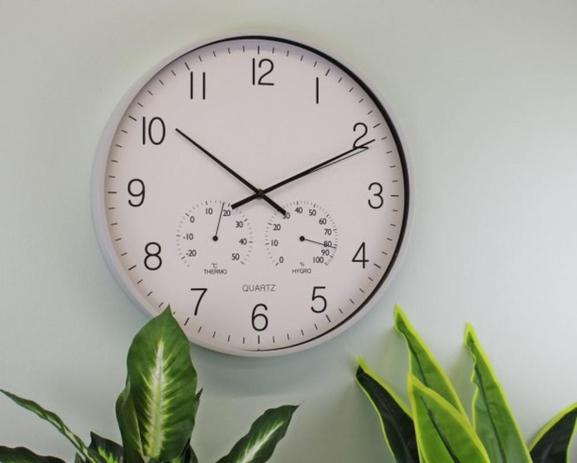 Relogio de parede com termometro e medidor de umidade Clearance