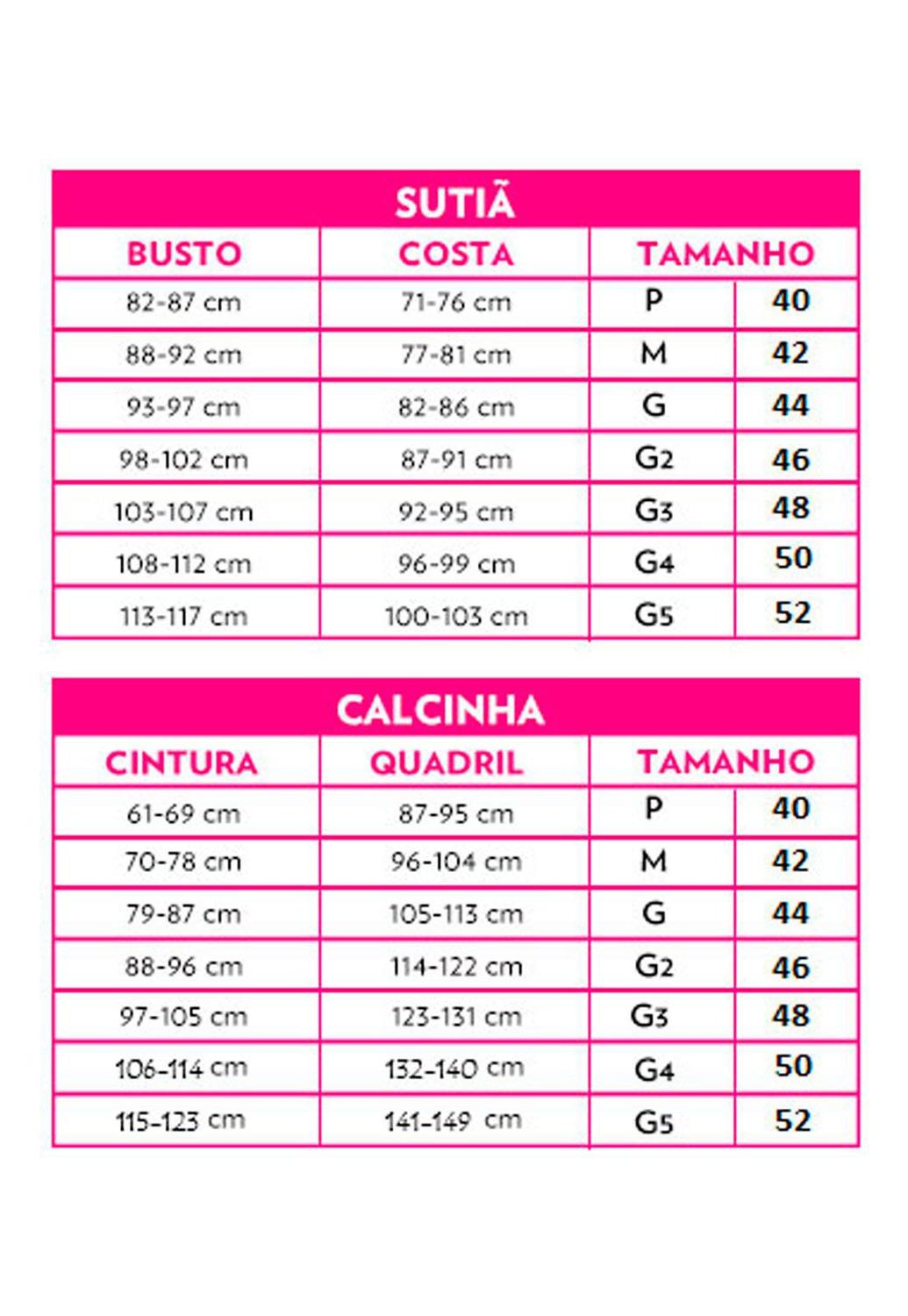 Sutiã 44 é m ou g Clearance, Tabela de Tamanho e Guia de Medidas DeMillus | Estação Intima Clearance