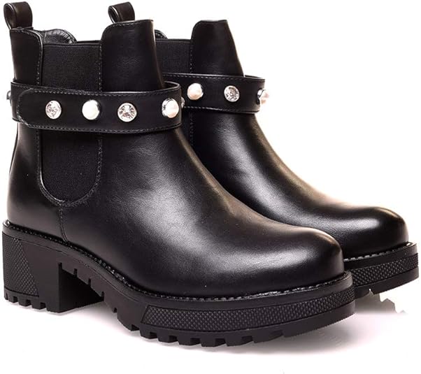 Bottine modress Clearance, Bottines à talons noires bi matières avec sangle Clearance