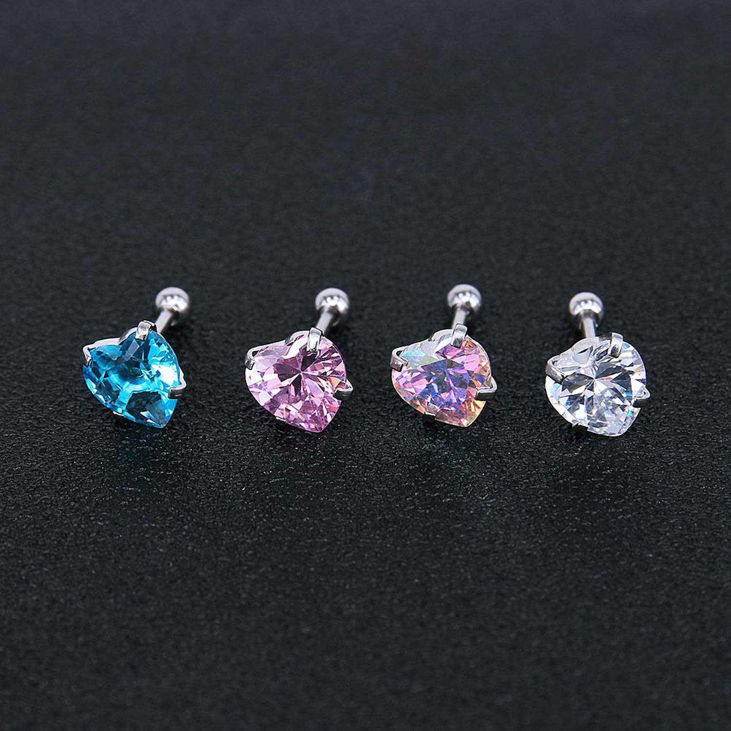Tiny crystal stud earrings Clearance, Tiny Round Crystal Studs Earrings Screw Ball Stainless Steel Female Earrings Mini,Pink Round,4mm Clearance