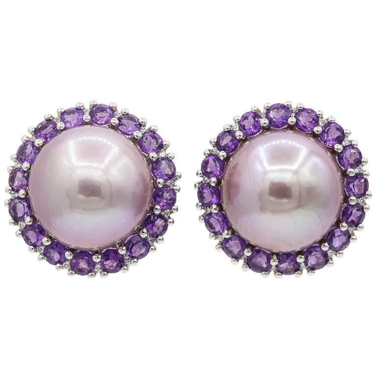 Pink amethyst stud earrings Clearance, Amethyst and Pink Freshwater Pearl Diamond Studs Earrings at 1stDibs Clearance