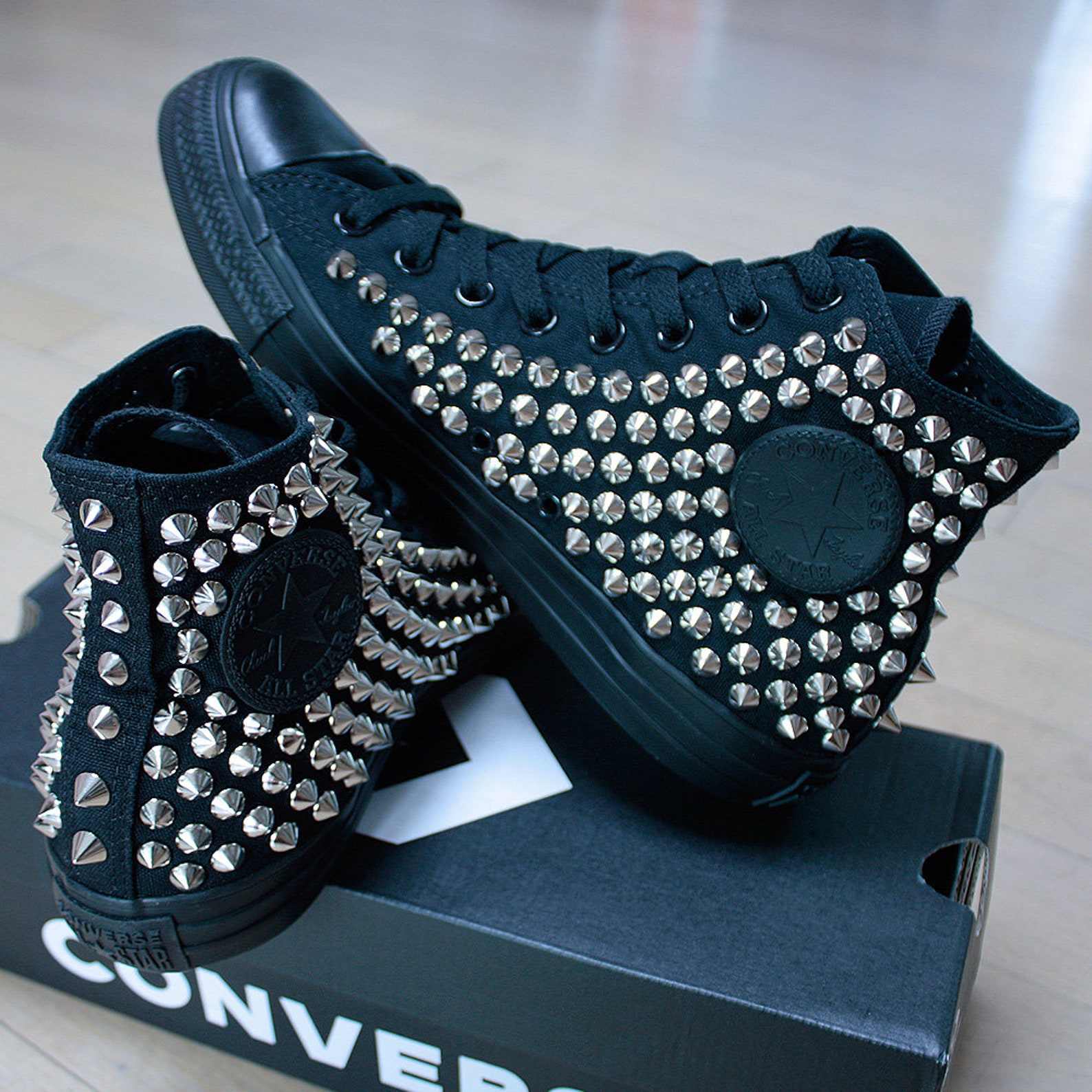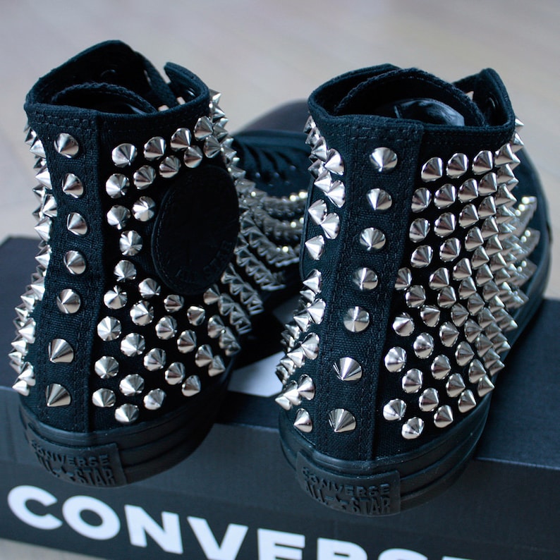 Chucks mit nieten Clearance, Echtes CONVERSE Schwarz mit Nieten und Ketten All-Star Chuck - Etsy.de | Studded converse, Chuck Clearance