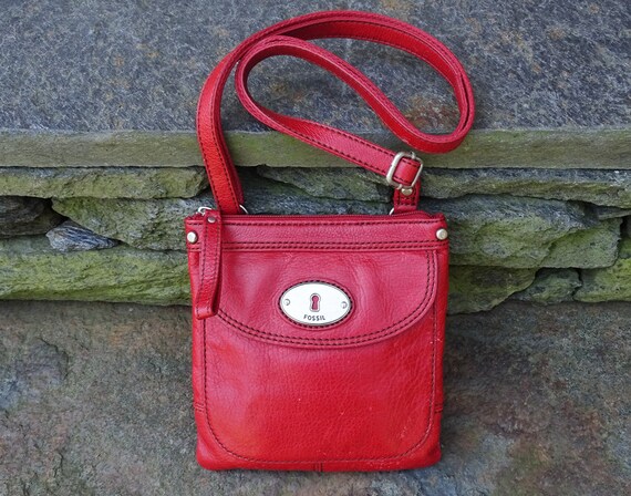 Fossil red leather shoulder bag Clearance