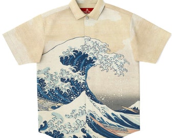Japanese art button up shirt Clearance, Hokusai Short Sleeve Shirt Collared Clearance