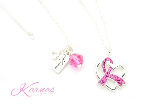 Swarovski cancer zodiac necklace Clearance, BREAST CANCER AWARENESS Necklace Made With Swarovski Elements Clearance
