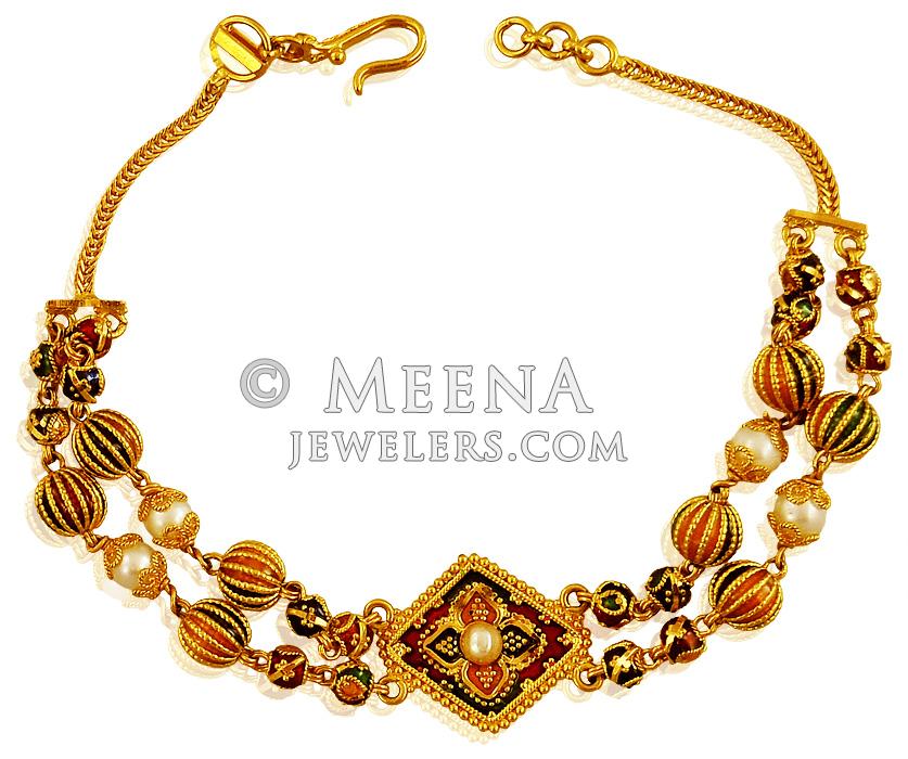 Ladies bracelet fancy Clearance, 22K Fancy Ladies Meenakari Bracelet - BrLa18770 - 22k Gold Ladies Bracelet designed with Clearance