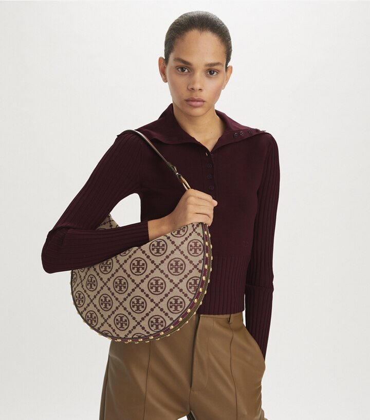Tory burch studded bag Clearance, T Monogram Jacquard Studded Crescent Clearance