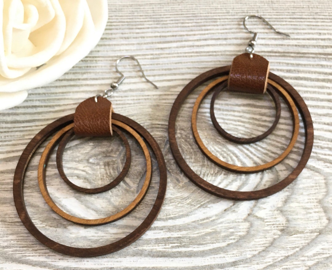 Wooden earrings hoops Clearance, WOOD Hoop EARRINGS Handmade Wood Hoop With Turquoise Black - Etsy UK Clearance