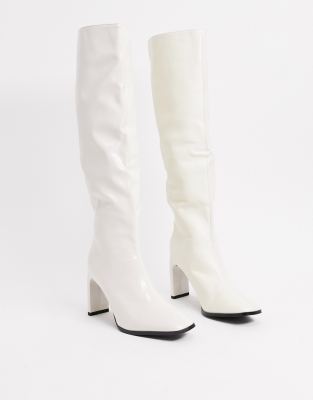 - White knee high boots square toe shop
