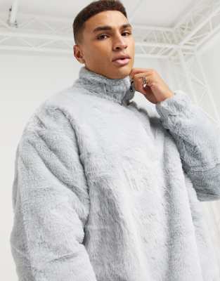 Half zip faux fur sweatshirt Clearance, ASOS Design Oversized Faux Fur Half Zip Sweatshirt in Light gray-Grey Clearance