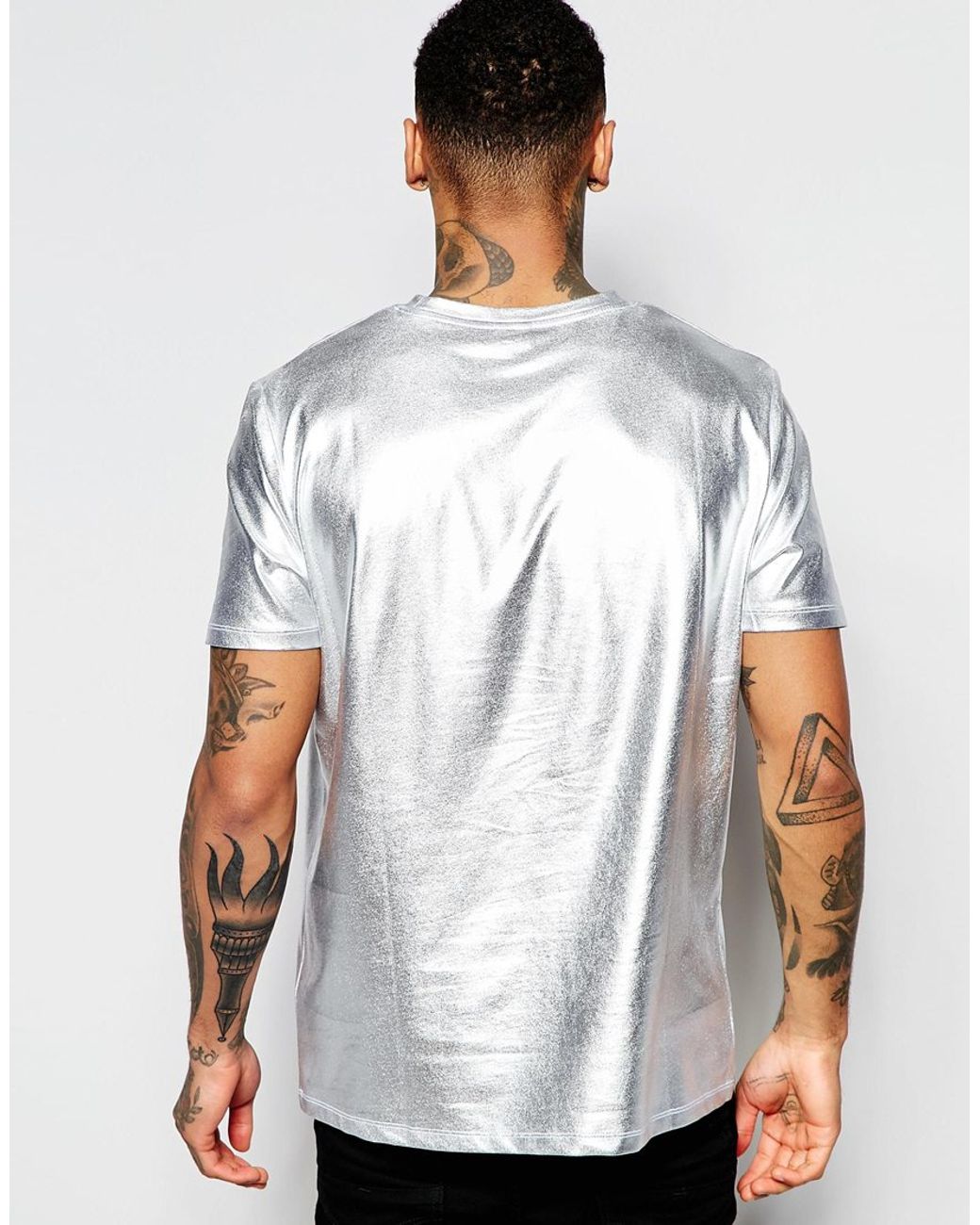 Silver t shirt mens Clearance, ASOS T-shirt In Metallic Silver for Men Clearance