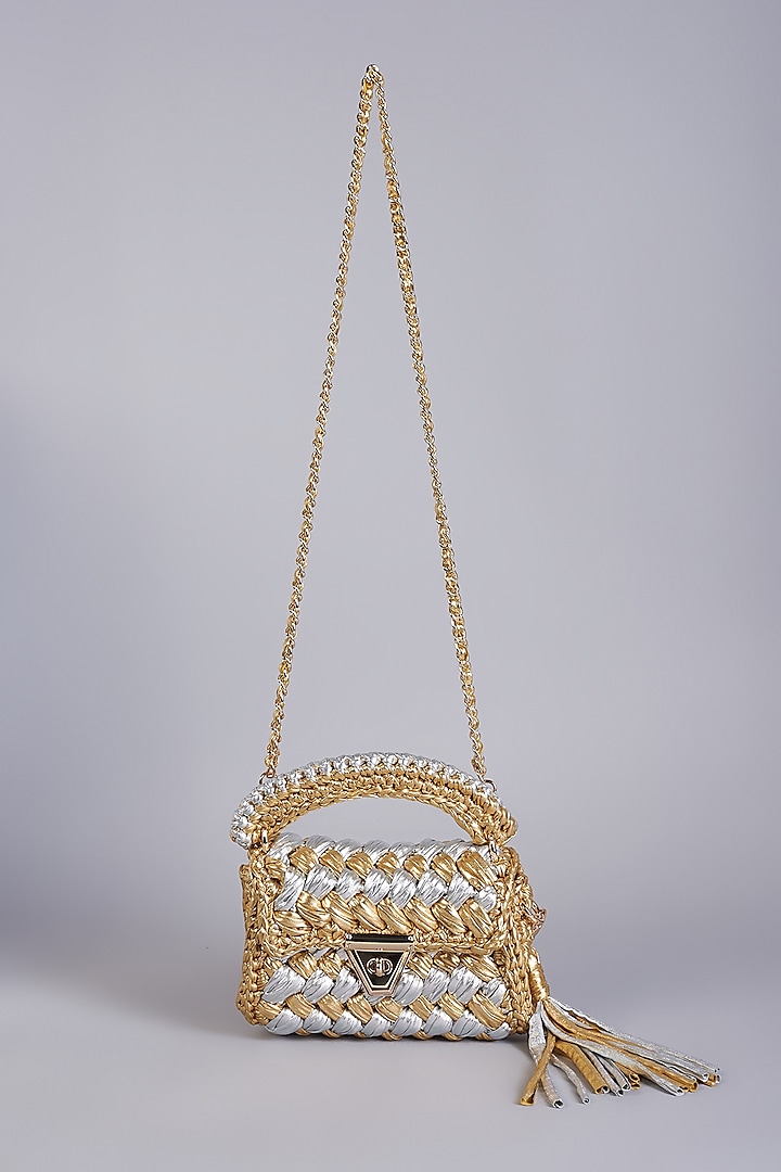 Sling bag gold Clearance, Gold u0026 Silver Polyester Yarn Sling Bag Design by Bijit at Pernia's Pop Up Shop 2024 Clearance