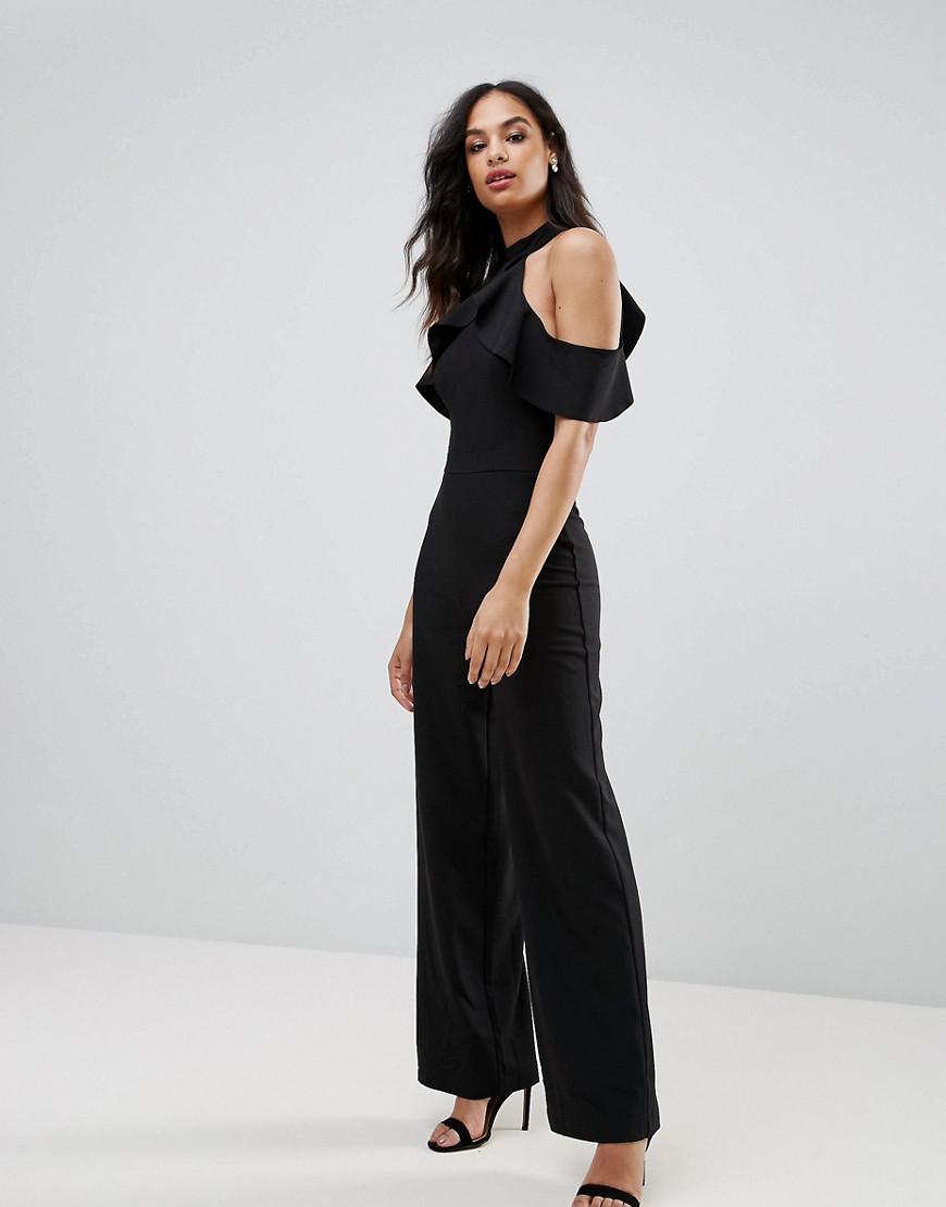 Black cold shoulder jumpsuit Clearance, Lipsy Cold Shoulder Jumpsuit With Frill Clearance
