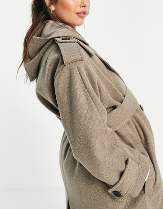 - Slouchy belted coat with hood outlet