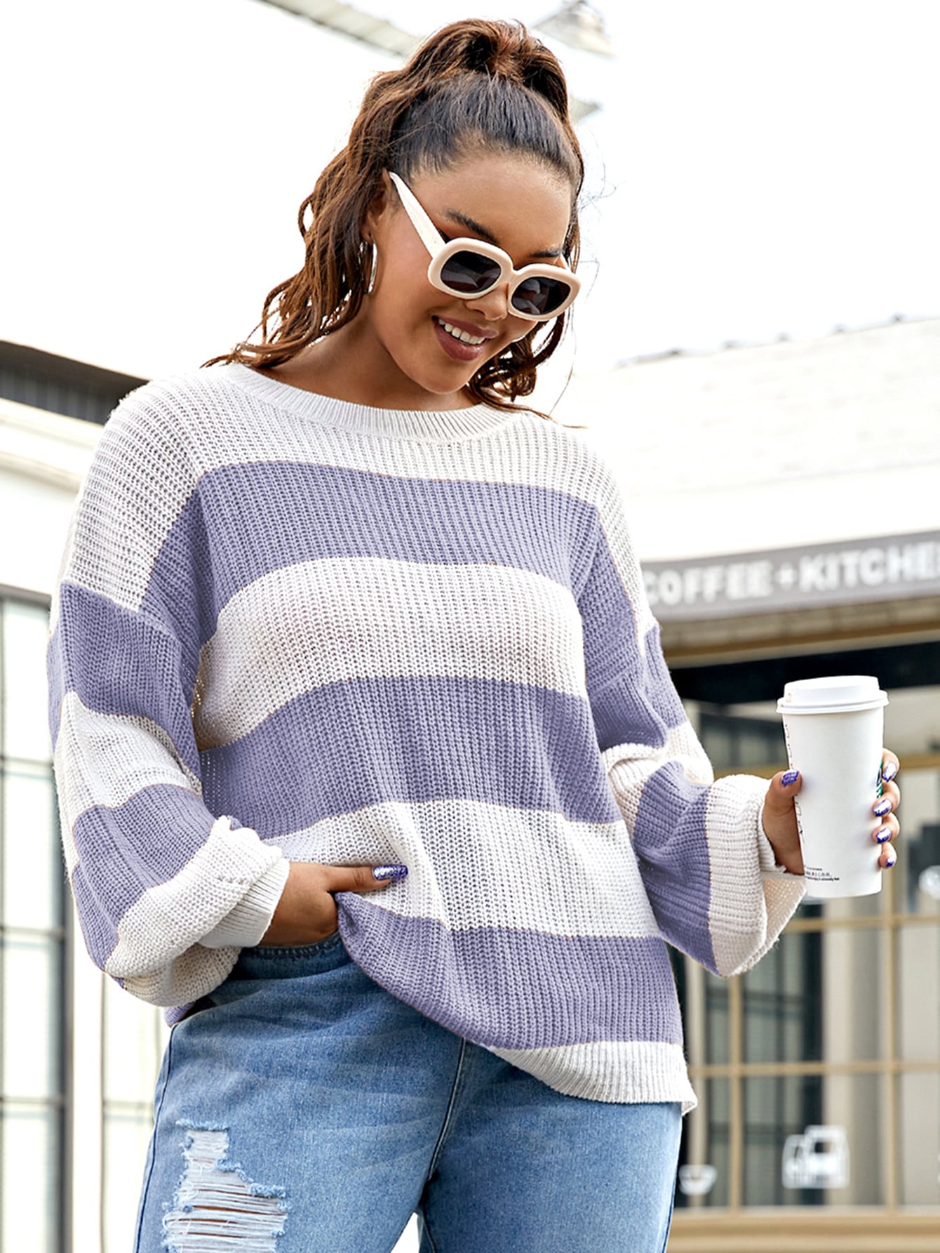 Walmart color block sweater Clearance, Women's Plus Size Drop Shoulder Color Clearance