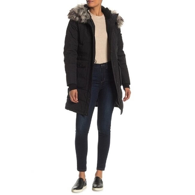 - Bcbg faux fur trim hooded quilted jacket clearance