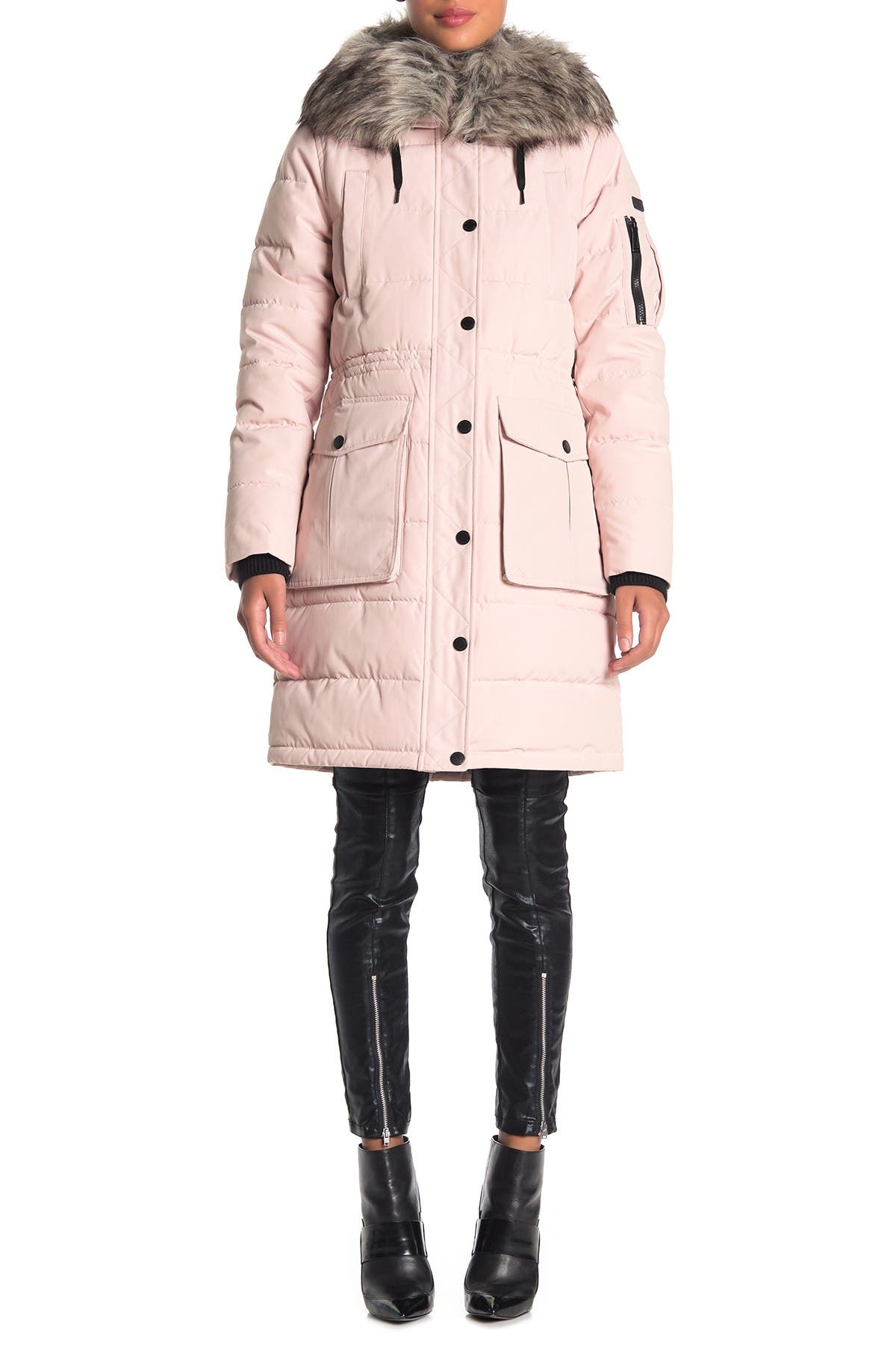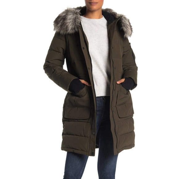 - Bcbg faux fur trim hooded quilted jacket free shipping