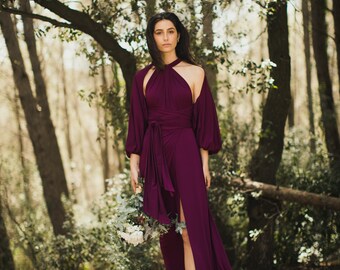 Brautjungfernkleider aubergine Clearance, Brautjungfern Aubergine Kleid, Party Sexy Kleid, Aubergine Infinity Kleid, Event Kleid, Auplant Brautjungfern Kleid, Mutlidres Kleid, Schlitz Kleid. - Etsy.de Clearance