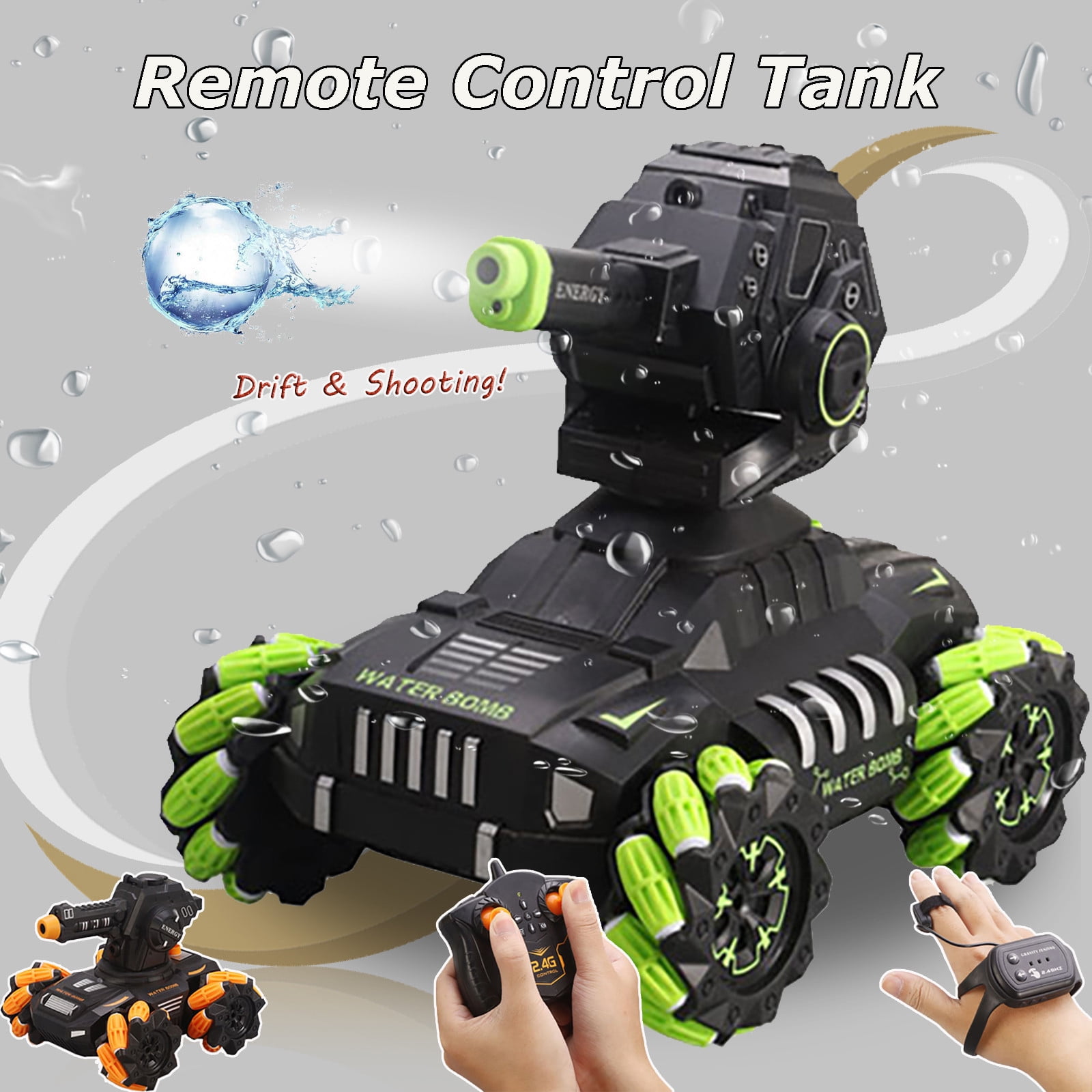 Shooting tank toy Clearance, Clodeeu Remote Control Tank Car Scale Water Boom-Armored Stunt Car Toy Drift \u0026 Shooting, Size: One Size Clearance