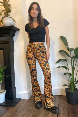 - Sunflower print flare pants sale