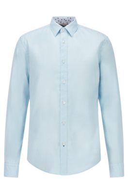 Hugo boss linen shirt Clearance, Boss Slim-Fit Shirt in Washed Stretch Linen- Light Blue | Men's Casual Shirts Size M Clearance