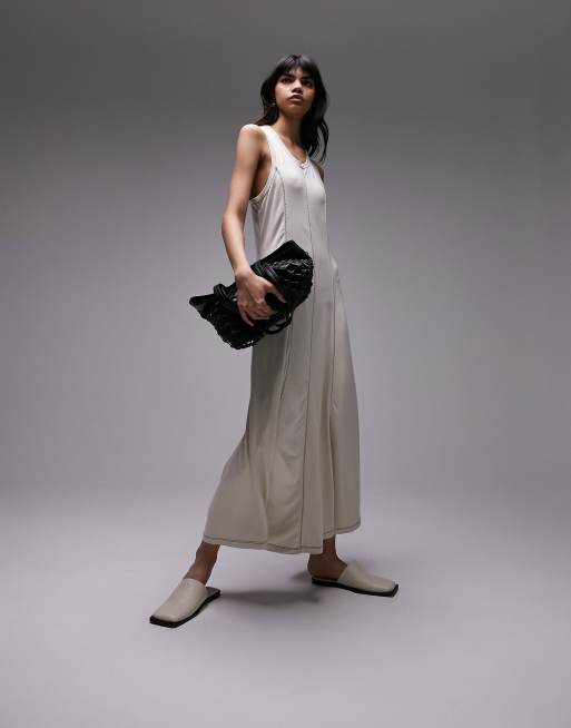 Cream jersey maxi dress Clearance, Topshop jersey contrast stitch maxi column dress in cream | ASOS Clearance