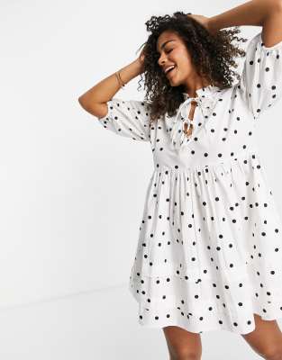 - Tie front polka dot dress