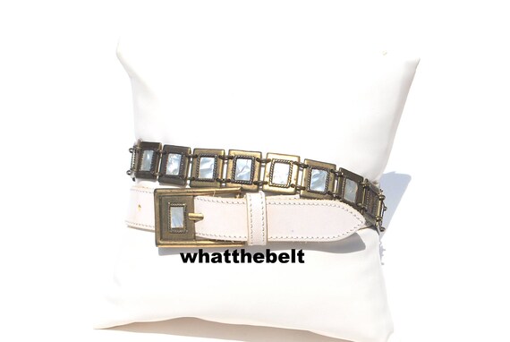 Etsy off white belt Clearance, Vintage Belt off White Leather With Abalone Conchos Metal Western Ranger Set Medium - Etsy Clearance