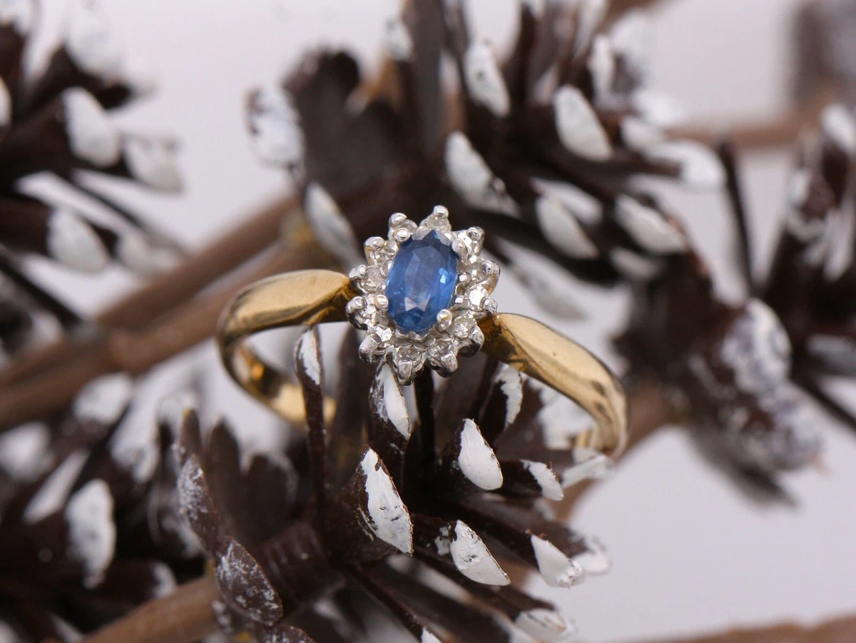 9ct gold diamond and sapphire cluster ring Clearance, 9ct Yellow Gold Natural Sapphire u0026 Diamond Cluster Ring - Size P - British Made | eBay Clearance