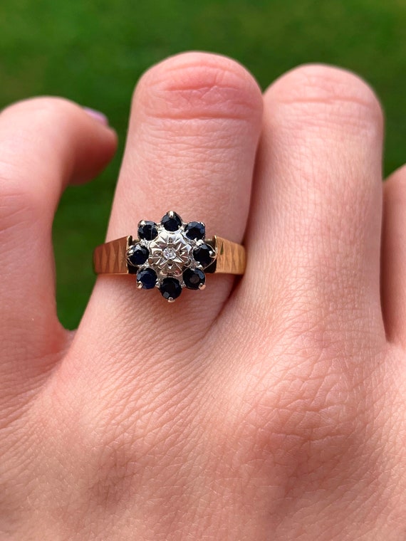 - 9ct gold diamond and sapphire cluster ring sale