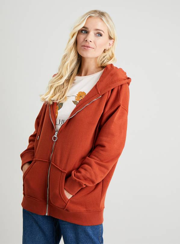 Red longline hoodie Clearance, Red Longline Hooded Sweatshirt With Gold Zip Detail - BrandAlley Clearance