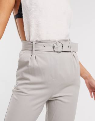Grey belted trousers Clearance, Petite Dark Grey Belted High Waist Clearance