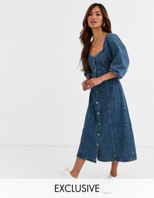 - Puff sleeve denim midi dress clearance