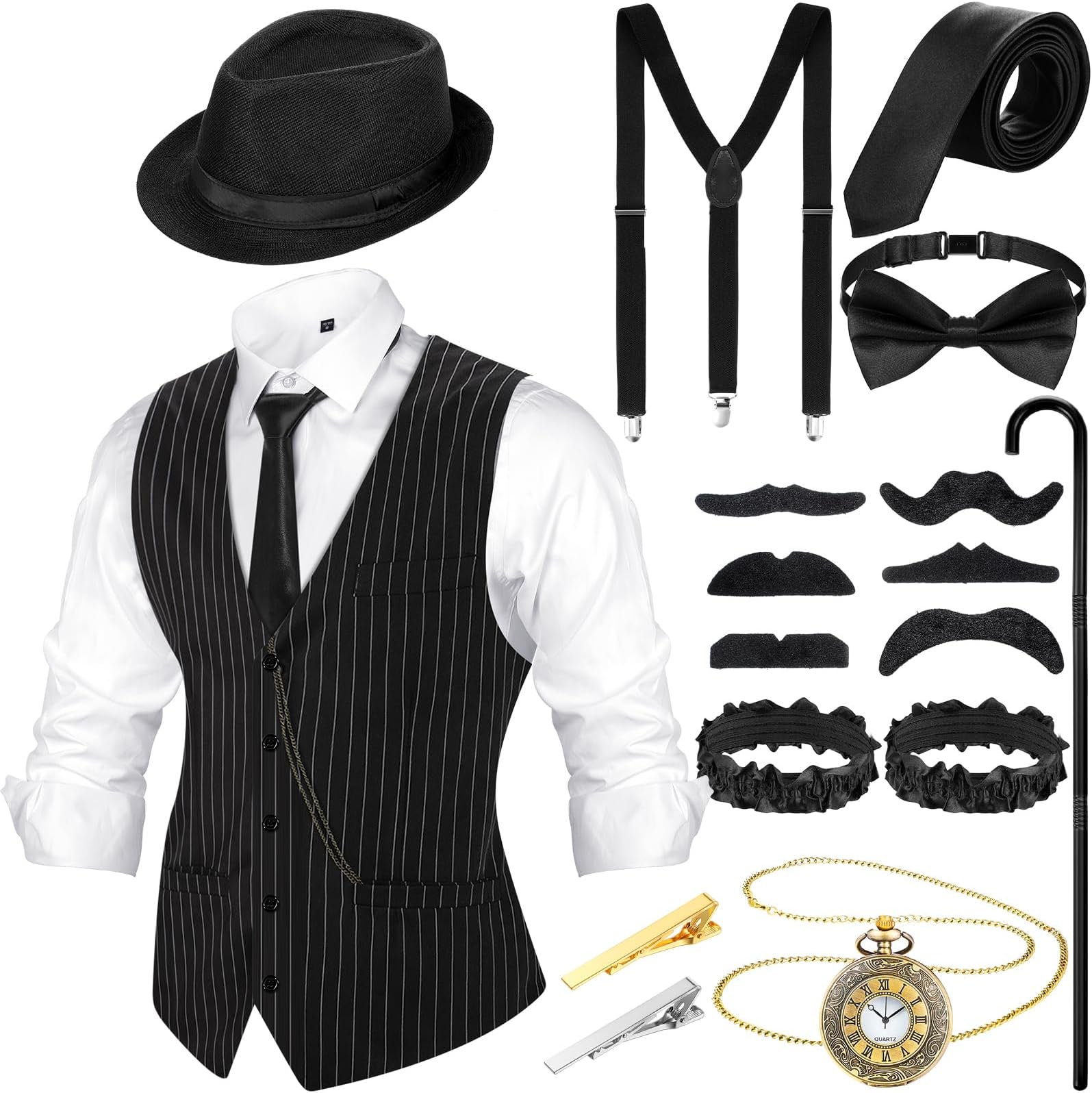 1920 gangster attire Clearance, CHUANGLI 1920S Mens Great Gatsby Accessories Set Roaring 20s 30s Retro Gangster Costume Clearance