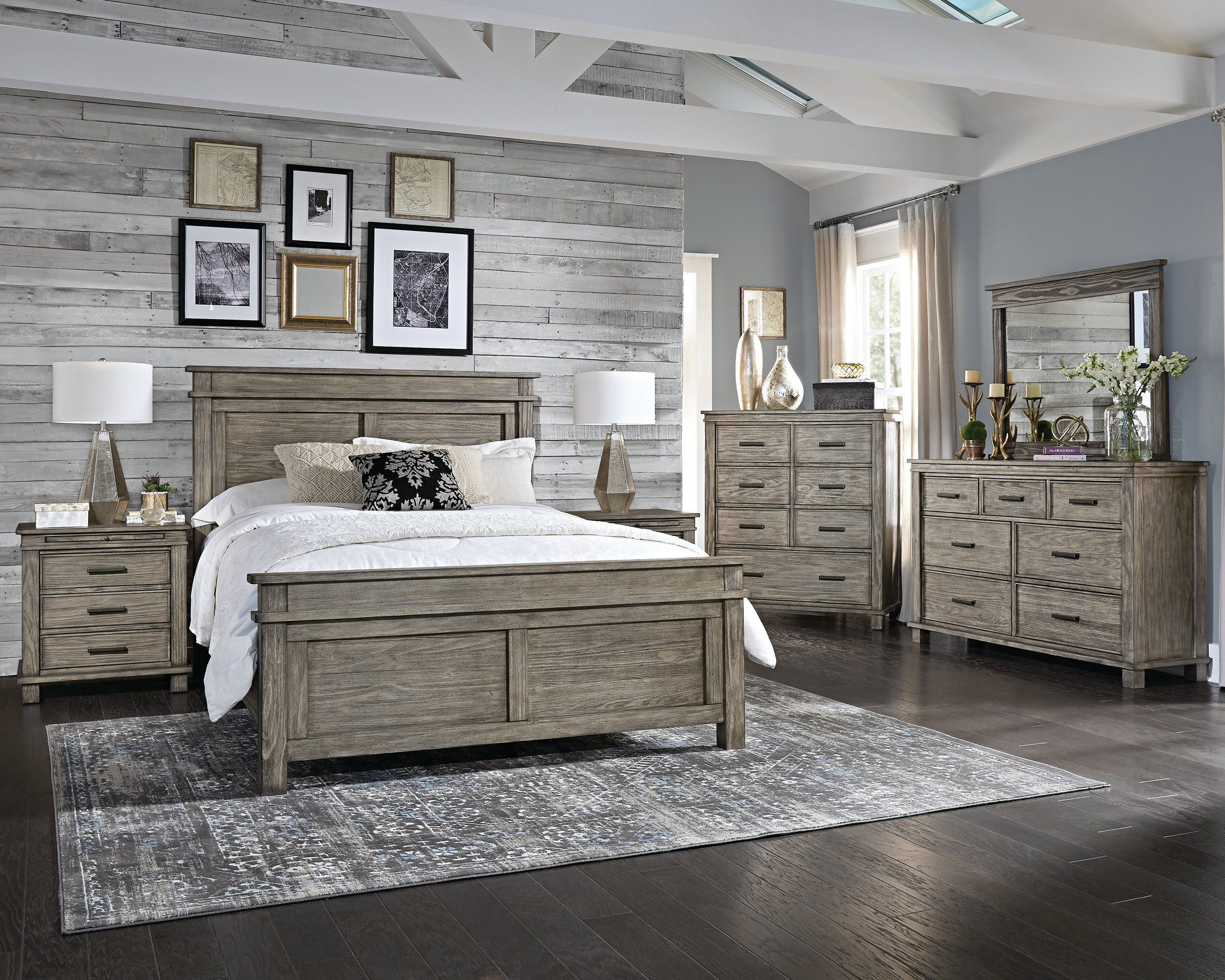 Grey wood dresser set Clearance, Bateson Queen Size Bedroom Set - Brown Clearance