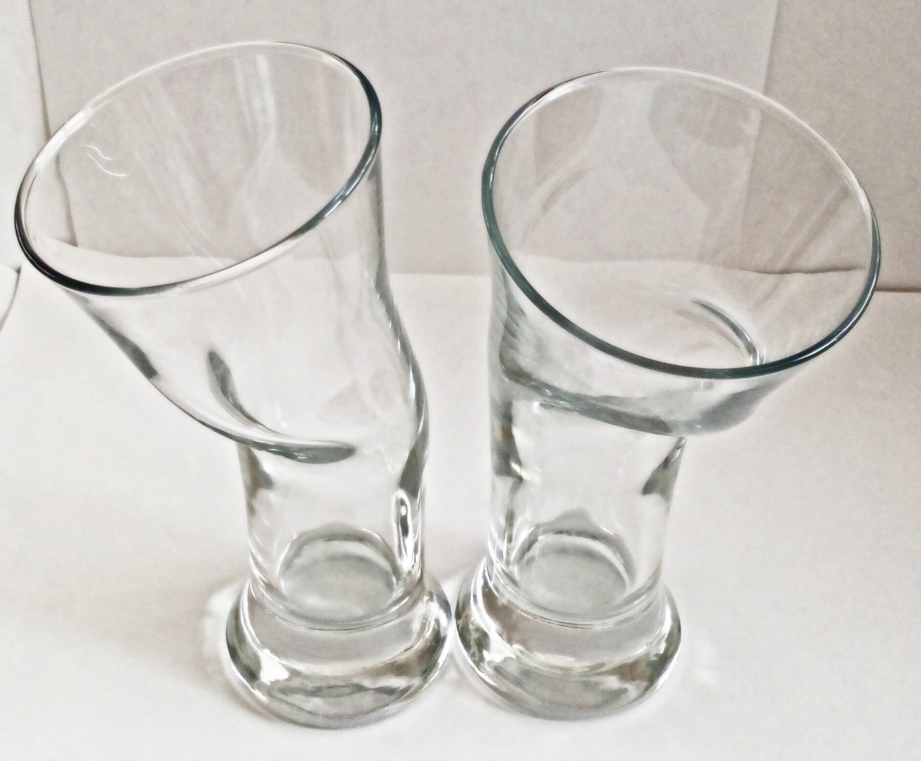 Crooked drinking glasses Clearance, Pair OF RARE Crystal Slanted Crooked Clearance