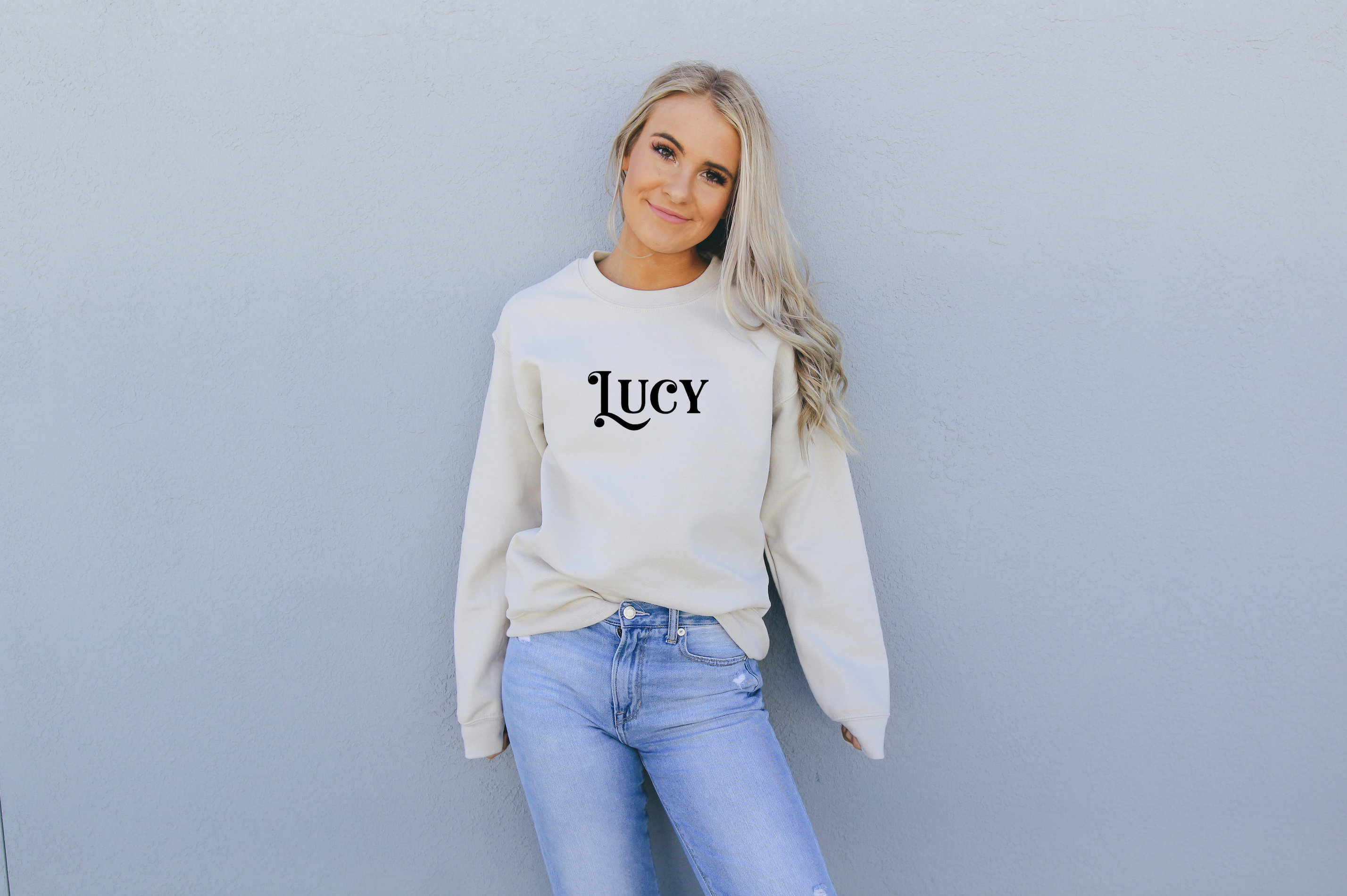 Gildan sweatshirt sand Clearance, LettersLucy Gildan G180 Sand, Sweatshirt Mockup, Model Mockup, Gildan Sweatshirt Clearance