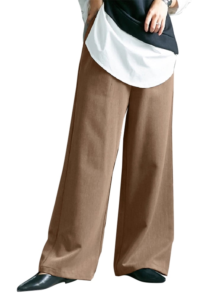 Baggy wide leg trousers Clearance, ZANZEA Women Elastic Waist Solid Color Clearance