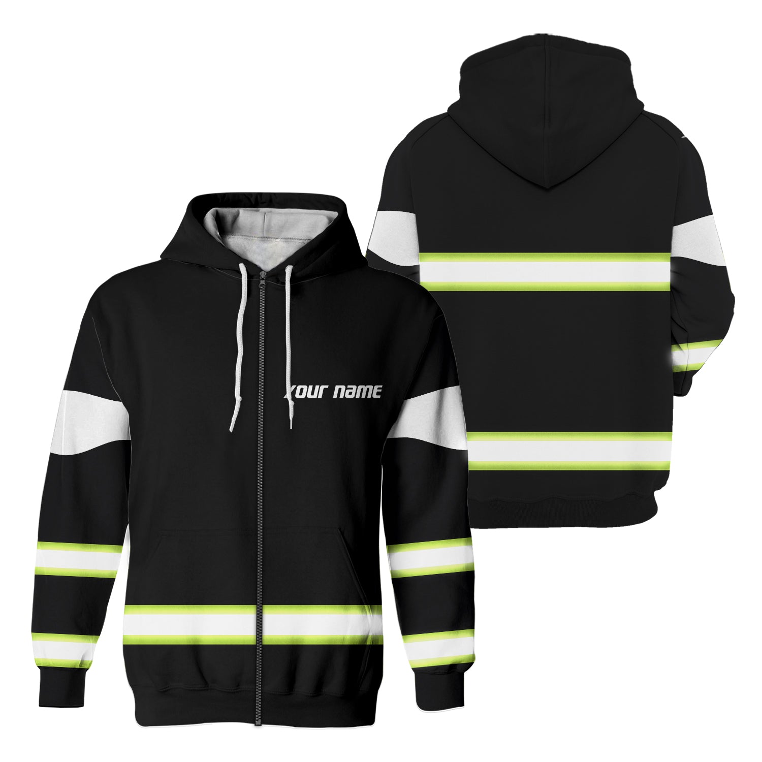 Reflective hoodie custom Clearance, High Visibility Zip Hoodie Reflective Black Green Orange Custom Name Safety For Runner, Cyclist Clearance