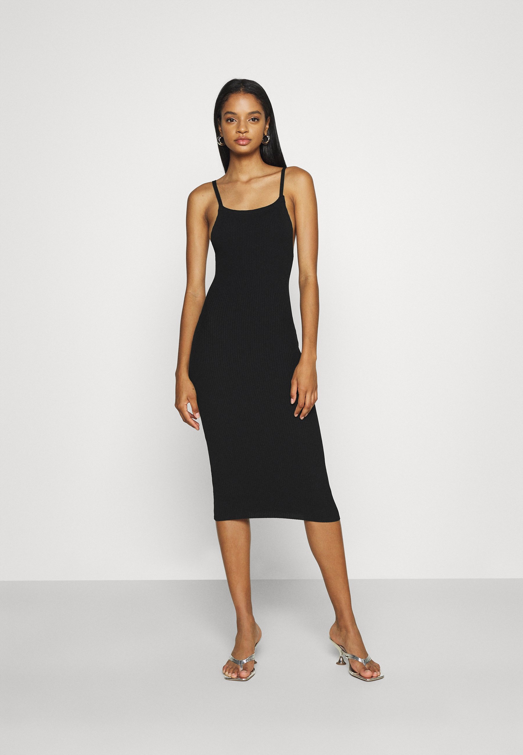 - Shopping Black square neck midi dress
