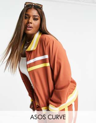 70s track suit Clearance, ASOS Design Curve 70s Retro Tracksuit Jacket - Part of A set-Brown Clearance