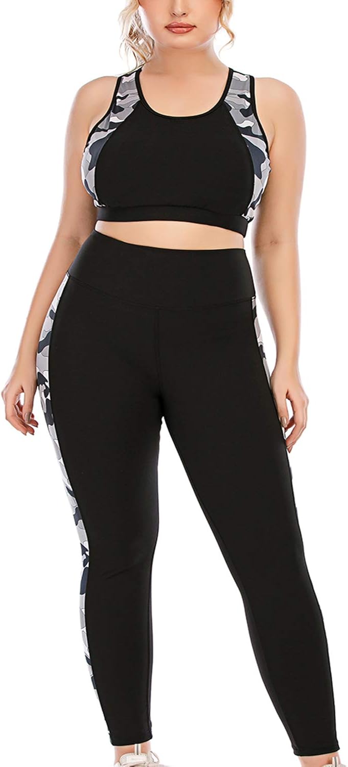 Plus size maternity activewear Clearance, Women's Plus Size Yoga Set Two Piece Set Workout Outfits Sports Bra High Waist Leggings with Clearance