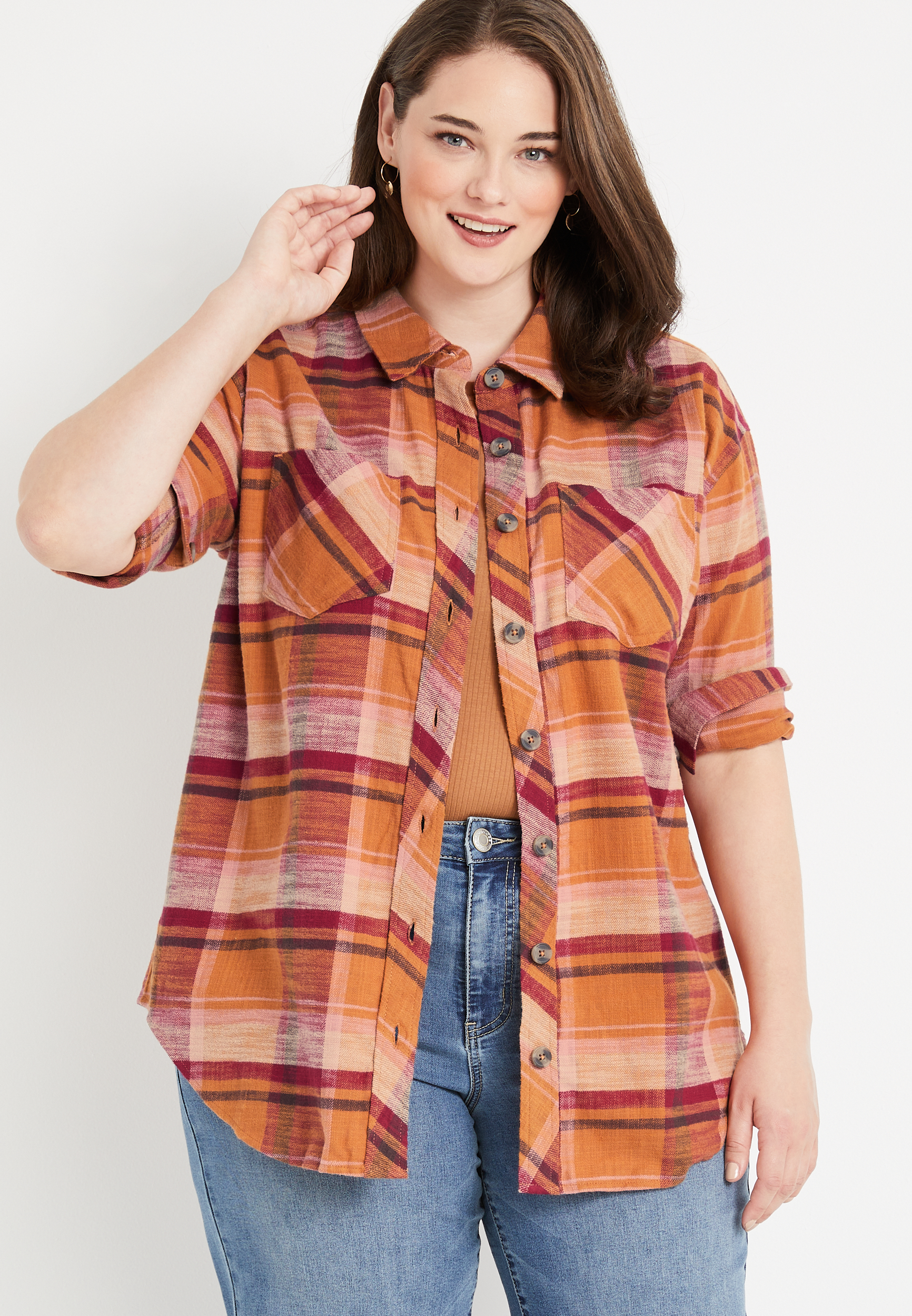 Maurices flannel shirts Clearance, Plus Size Cabin Plaid Gold Oversized Clearance