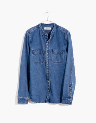 - Banded collar denim shirt clearance
