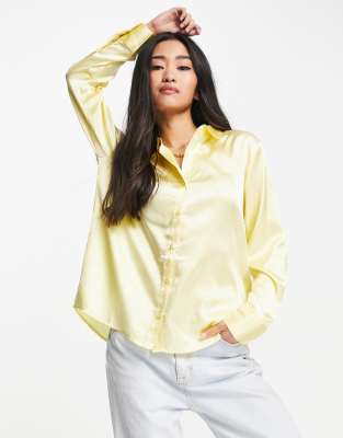 Satin yellow shirt Clearance, Long Sleeve Satin Shirt Yellow | na-kd.com Clearance
