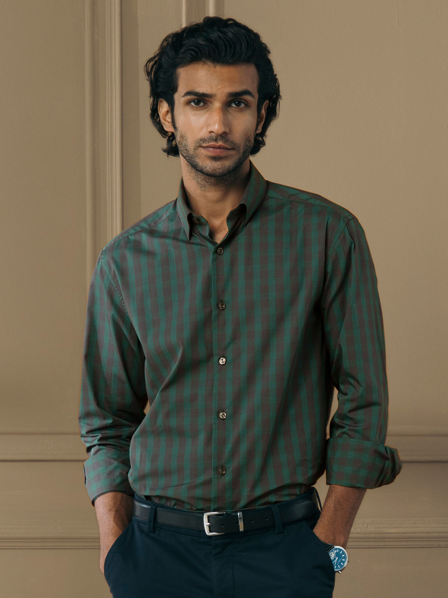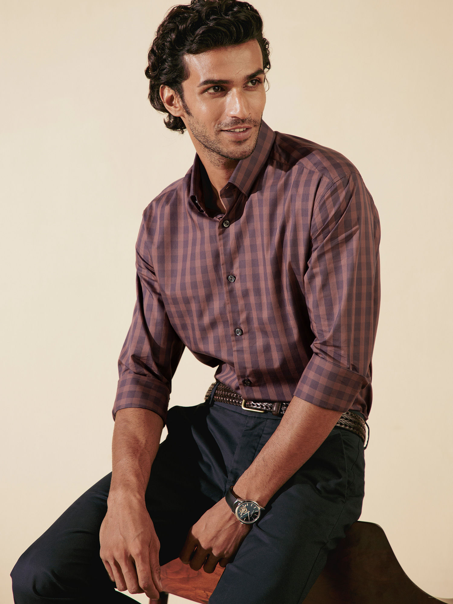 Andamen formal shirts Clearance, Buy Andamen Brown Checked Formal Shirt Clearance